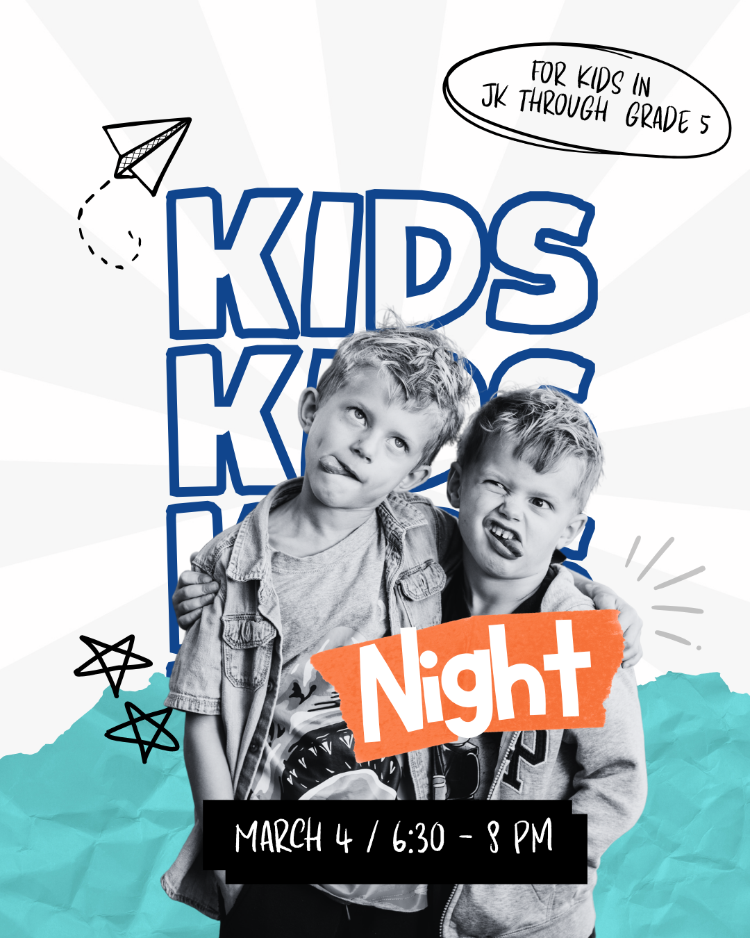 We are excited to invite parents to bring their children from JK to Grade 5 to our Kids Night on March 5 at 6:30 pm. Doors open at 6:20 pm and the evening will run until 8:00 pm.